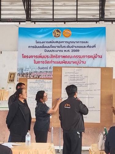 การมีส่วนร่วม: ส่งเสริมให้ผู้นำชุมชนและประชาชนร่วมกันวิเคราะห์สภาพปัญหาและจุดแข็งของหมู่บ้าน