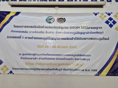 วันที่ 24 - 26 มีนาคม 2569 ณ ศูนย์เรียนรู้ด้านหม่อนไหมแบบครบวงจรของมูลนิธิชัยพัฒนา บ้านโนนเสาเล้า ตำบลโนนแดง อำเภอบ้านเขว้า จังหวัดชัยภูมิ